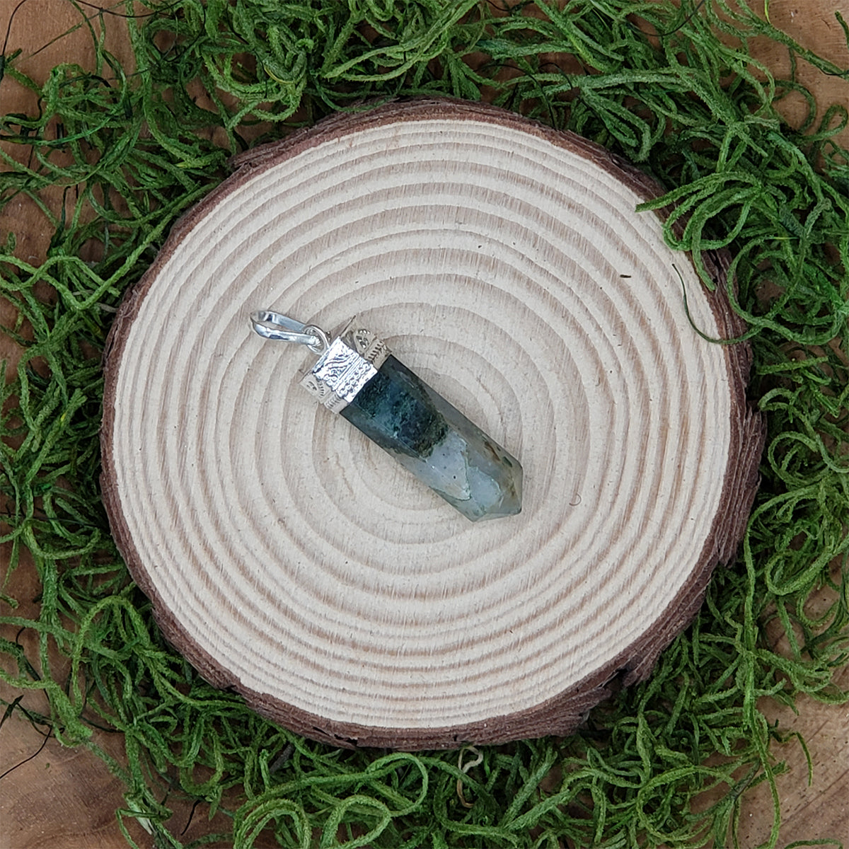 Agate, Moss - (Semi-Precious) In addition to the healing properties of Agate and Chalcedony, Moss Agate is a stone of new beginnings, optimism, and inspiration. Refreshes the soul and enables you to see beauty in all you behold. It draws a strong grounding connection with nature. It attracts abundance in wealth and improves self-esteem.