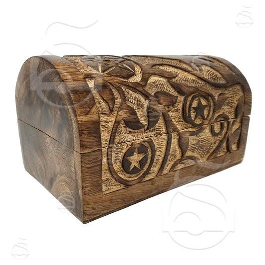 Raven & Pentagram Carved Wood Box
