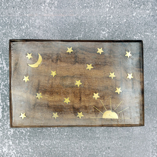 Brass Inlay Wood Box - Celestial